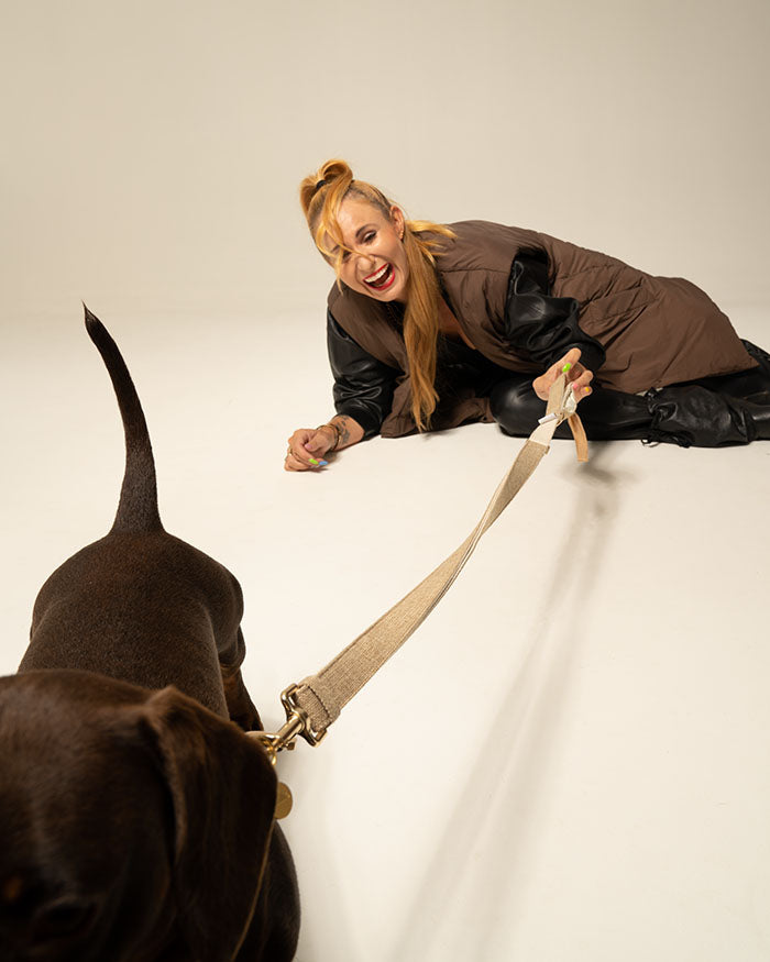 Ja, unsere All in Leash Leine ist Größen verstellbar und ist somit der optimale Begleiter für Outdoor Walks, City Scrolls oder Fahrradtouren. Dank Versteller ist die gewünschte Größe in Sekunden angepasst. Max 180cm & Min.107cm.